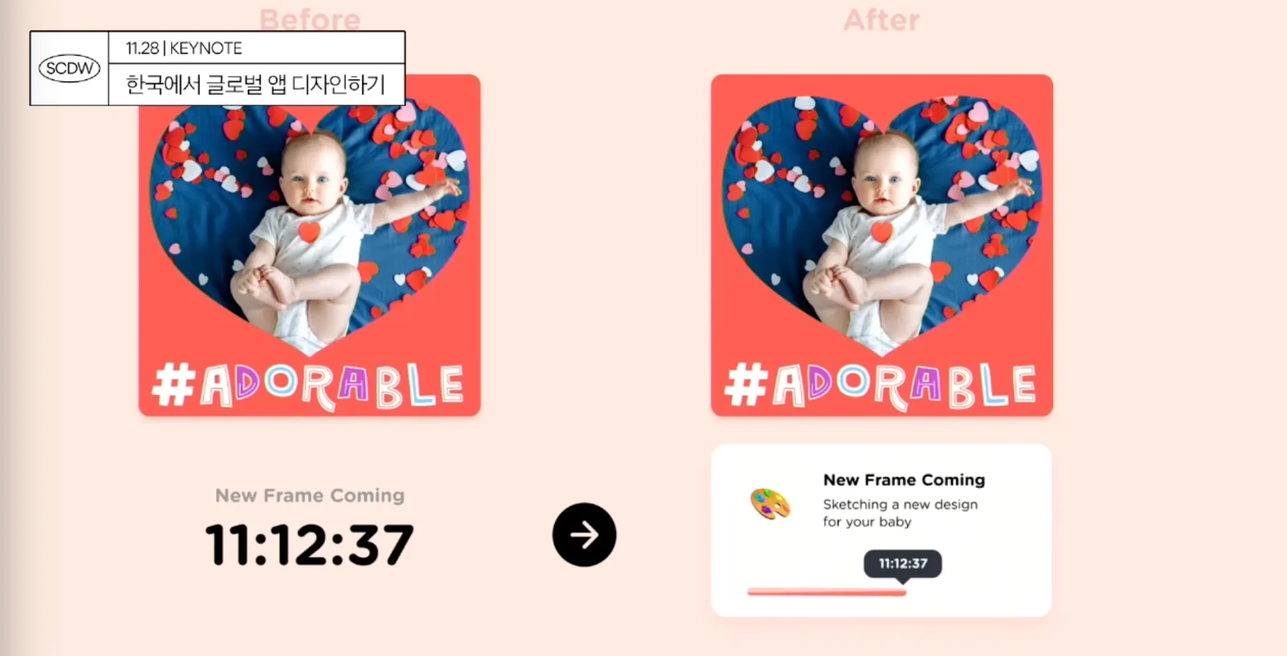 Before 의 New Frame Coming 을 봤을 때, 아무런 기대감이 들지 않는다 는 피드백 → 시간을 더 들여 오른쪽처럼 구성