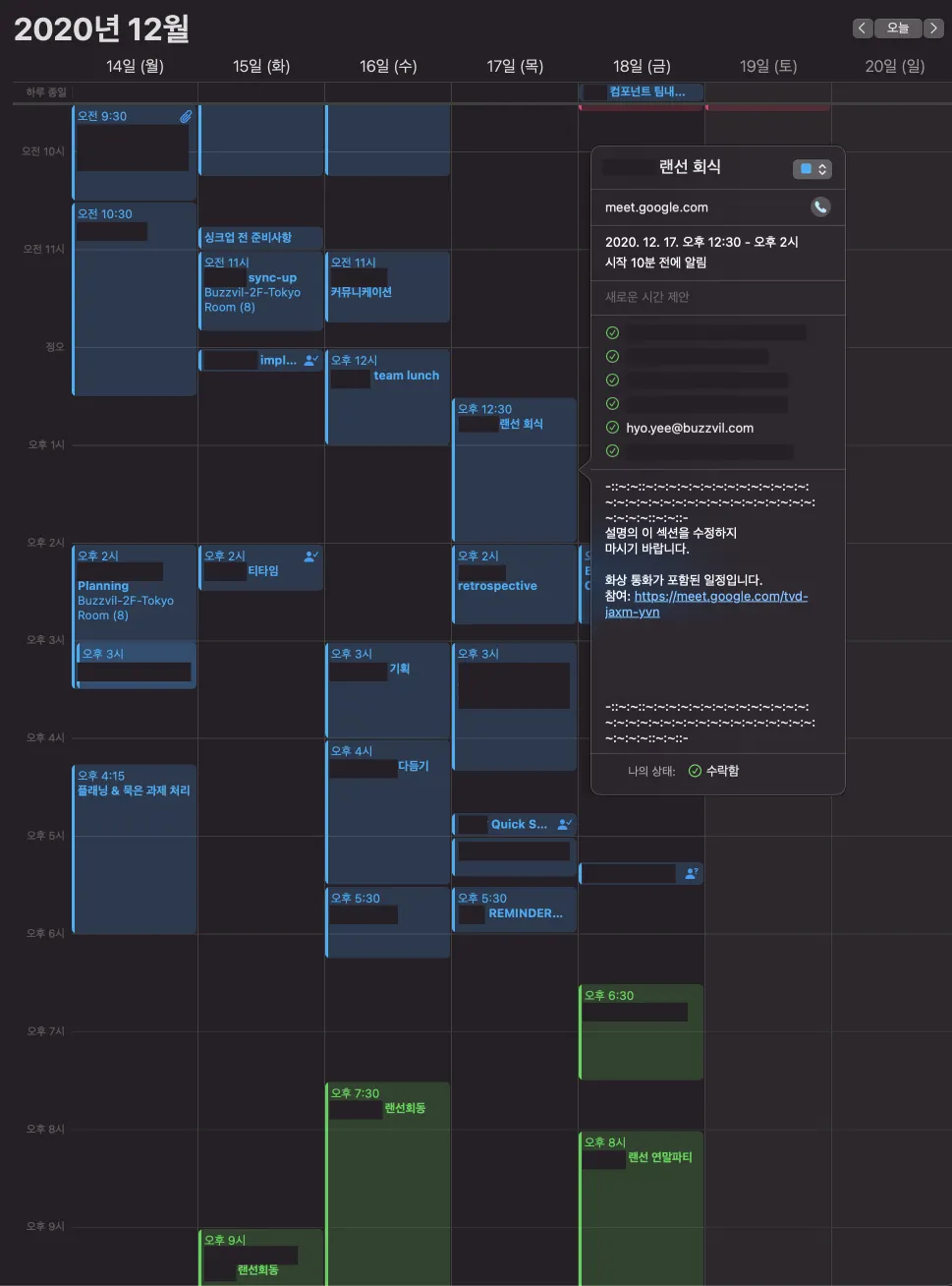 일정을 클릭하면 이런 식으로 화상회의 링크가 첨부되어 있습니다.