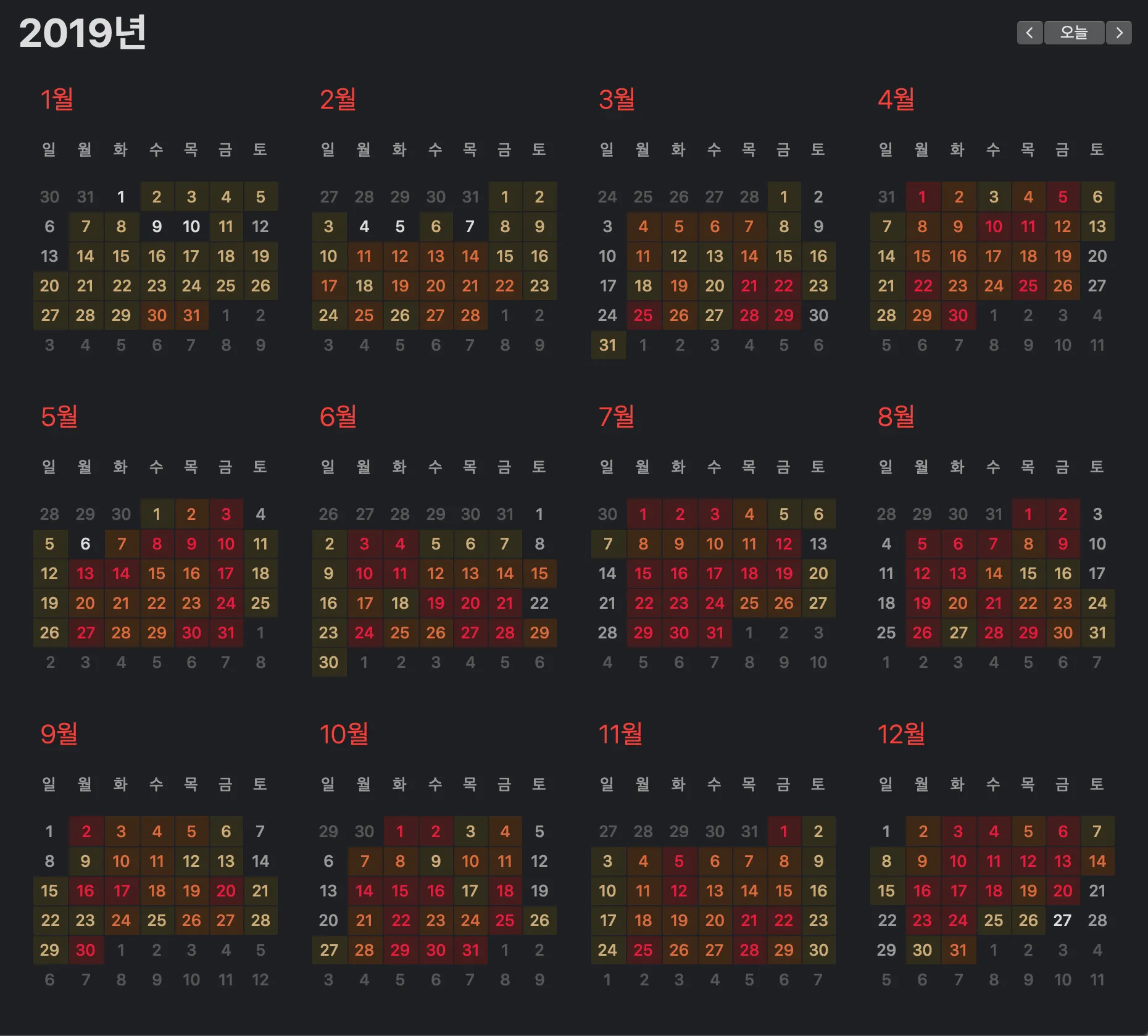 셀프 캘린더 이용에 커다란 레벨업이 2019년에 있었기 때문