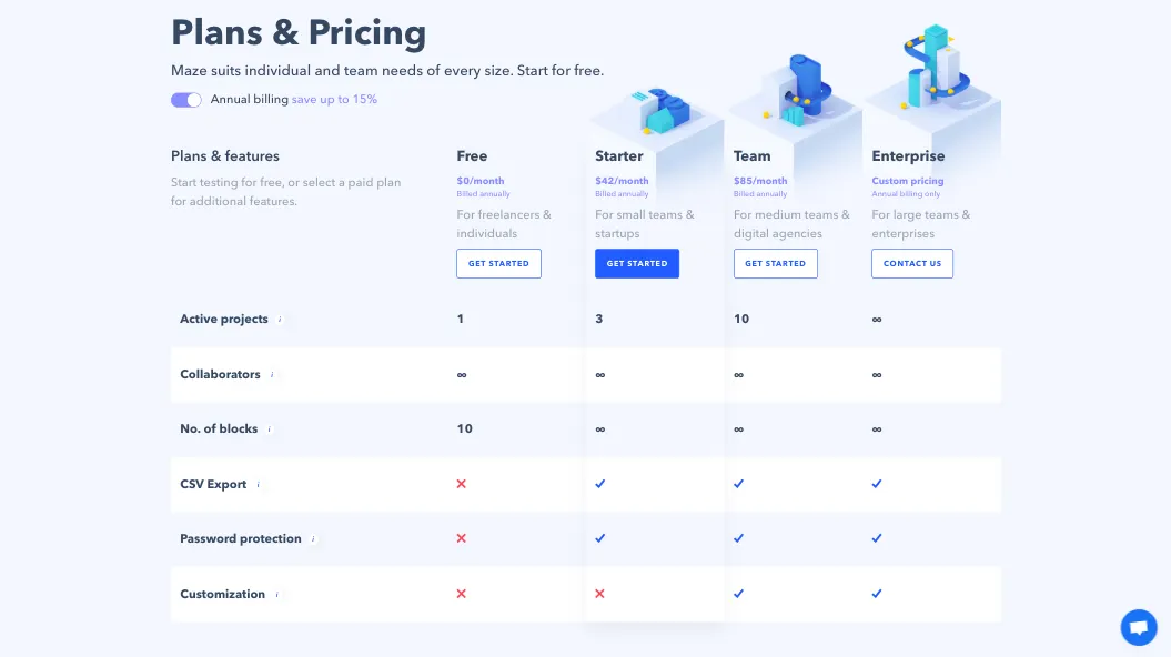 무료 버전은 계정당 단 한 개의 프로토타이핑 분석만 가능. starter 와 free 플랜의 가격 차이가 심함