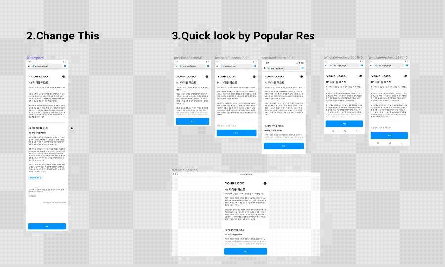 'template' 라고 표시된 컴포넌트의 내용을 수정해 보세요. 모든 디바이스의 화면이 바뀌게 됩니다