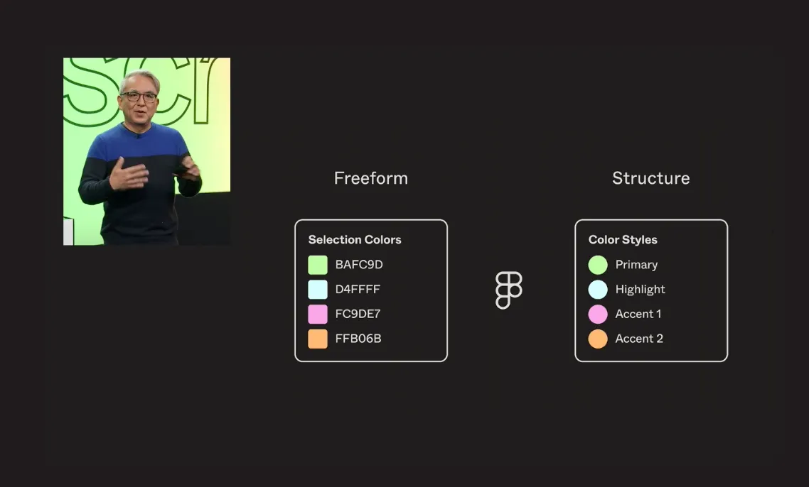 그렇다면 프리폼 디자인은 어떨까요? 피그마의 중요한 원칙 중 하나는 : 프리폼과 스트럭쳐 두 가치는 동등하게 중요하고, 디자이너가 프리폼과 스트럭쳐를 자유롭게 오갈 수 있도록 설계하는 것이에요.