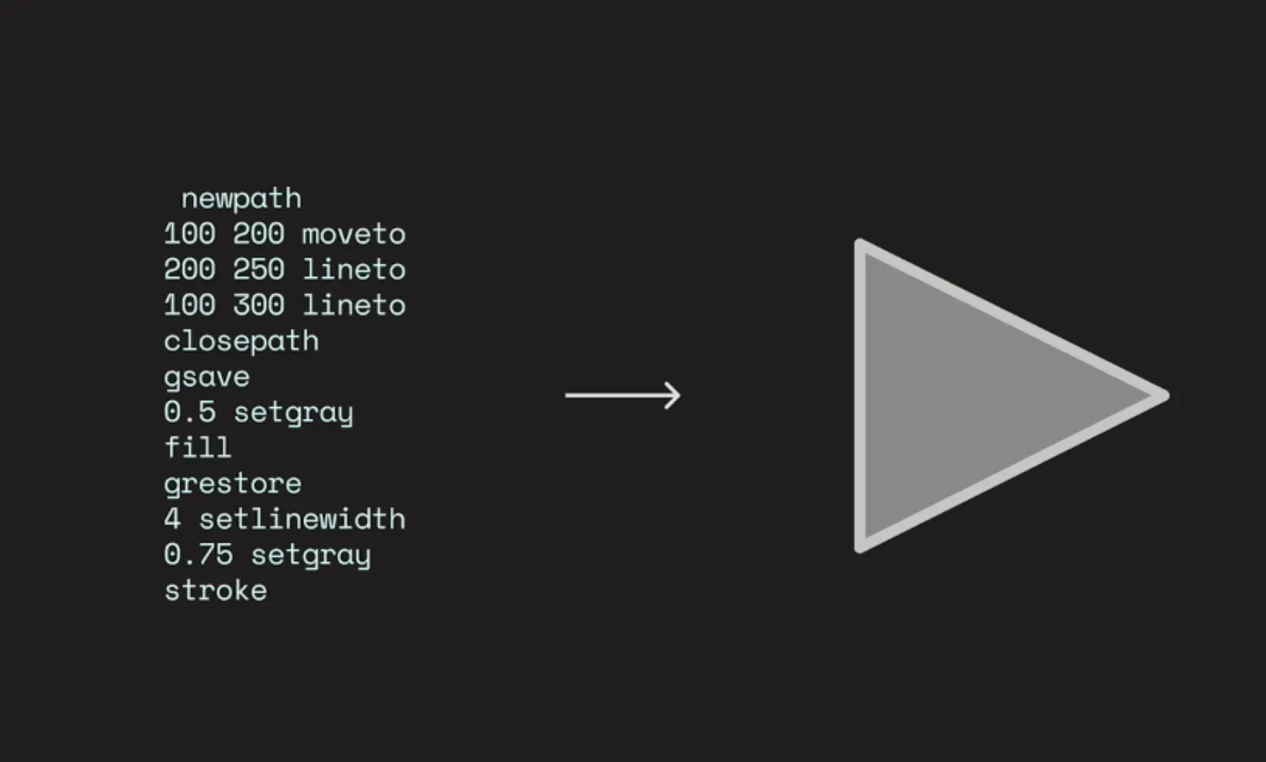 사람들은 포스트스크립트로 코드를 써서 그림을 그리거나, 다이어그램을 만들고 그랬어요. 하지만 어도비일러스트레이터 등 더 자유도가 높은 여러가지 툴이 생겨나고 있을 때, 포스트스크립트를 계속 발전시키는 것은 의미가 없었어요. 사람들은 이런거 다 일러로 만들 수 있는데, 이걸 왜 코드로 만들어야 하냐고 했죠. 우리는 좀 다르게 생각했어요.