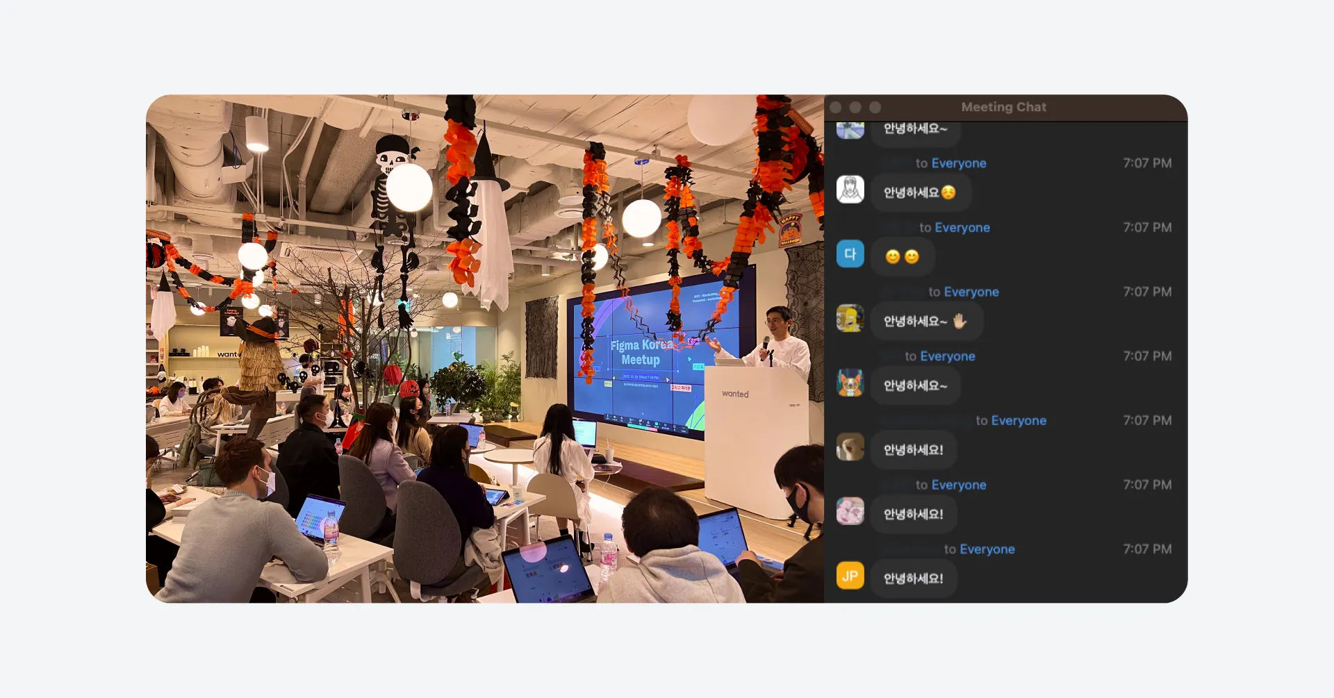 마침 저는 피그마 코리아 운영진이면서 원티드랩이라는 회사에 재직 중인 상황이었는데요, 원티드랩은 커리어 성장을 돕는 플랫폼을 표방하고 있어 피그마 행사 진행에 긍정적이었고 더욱이 훌륭한 오피스 라운지를 갖고 있었기 때문에 시너지를 낼 수 있을 것 같았습니다. 멋진 라운지에서 밋업을 진행했기 때문에 행사가 더 빛날 수 있었던 것 같습니다.