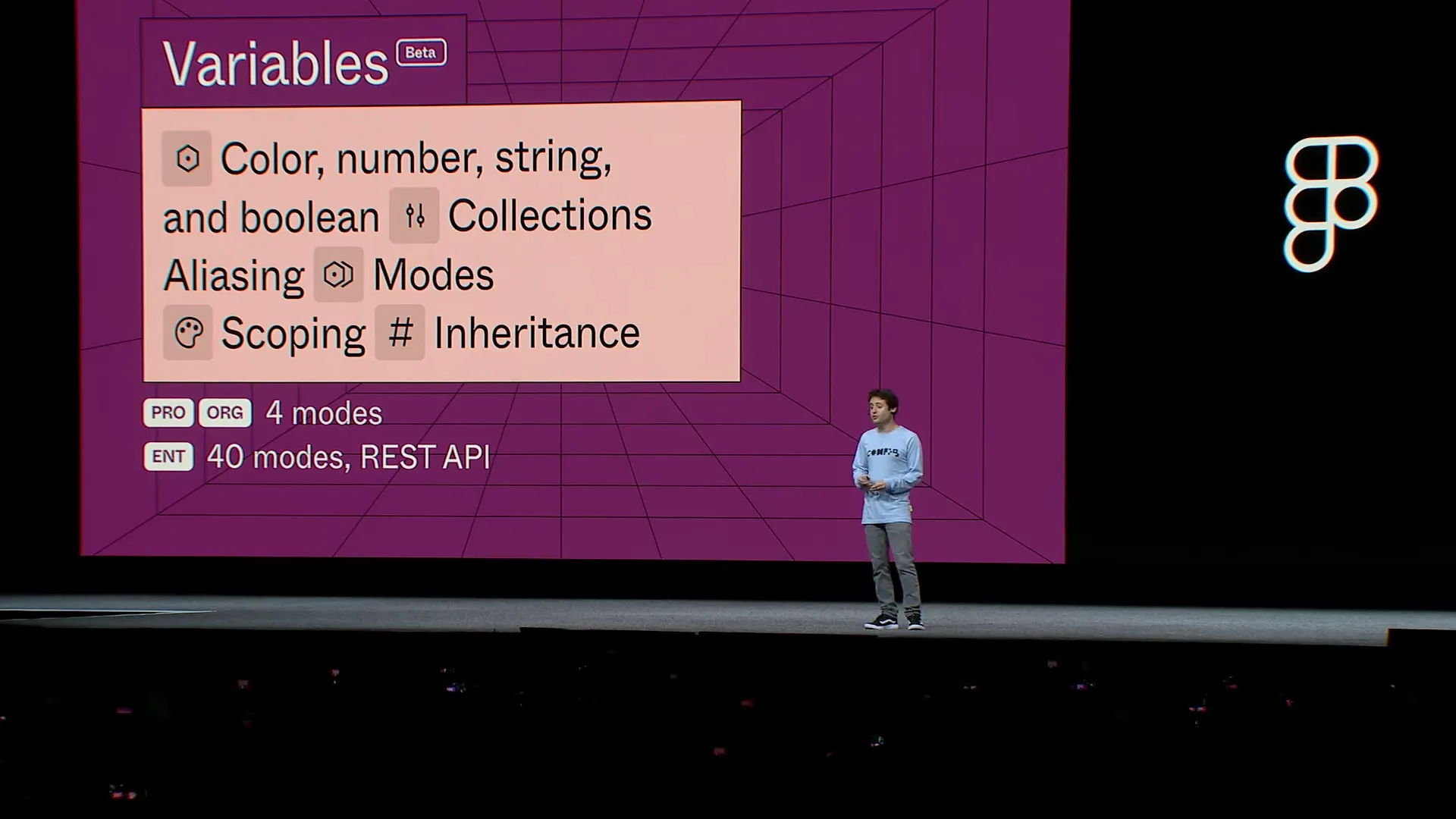 토큰의 상위호환 개념인 배리어블이 등장했어요. 컬러, 언어, 불린, 숫자, 코너 라운드값 등등 기본 개념을 특정 모드로 설정하고 쉽게 바꿔낄 수 있게 되었습니다. 이제 다크모드 대응이나 글로벌 언어 대응을 위해 별도 플러그인을 사용하지 않아도 됩니다.