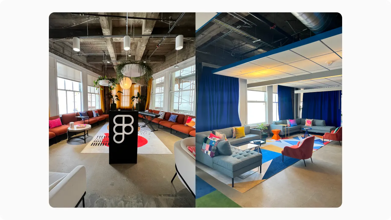 We also saw the wit in the conference room names. BOARDROOM - BIGMA, which is the name of the room we use when we need to make big decisions like investments, and the Lorem / Ipsum room, which are the beginning of the English placeholder words, were more memorable, and there were a lot of rainbow graphics to symbolize diversity. You'll also see rainbow graphics on the Figma loading bars in June, and the office fit in well with the digital product - it was cool and not tacky at all, even though despite all such strong colors.